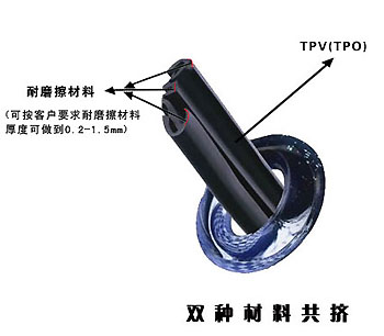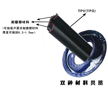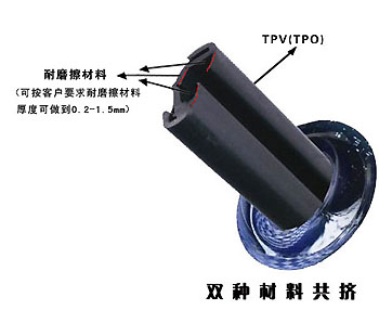 TPV(TPO)是EPDM和PP改性聚烯烴的一種動態硫化橡膠。它具有橡膠般的性能、塑料般的加工工藝,比重小、無毒、耐候性優,可在-60℃到+130℃使用,抗老化性好,并且可回收在使用的環保材料。我公司引進日本三井、住友等技術,成功研制出TPV(TPO)汽車玻璃導槽密封條。它是用不同硬度的材料,共同擠出、注射成型,和普通橡膠相比它加工工藝簡單、外觀光滑、重量輕(和同產品比輕30%),滑動阻力小、耐磨、環保,可解決汽車玻璃在升降時異響、卡滯、不平順等問題,是新一代汽車玻璃導槽的首選產品。